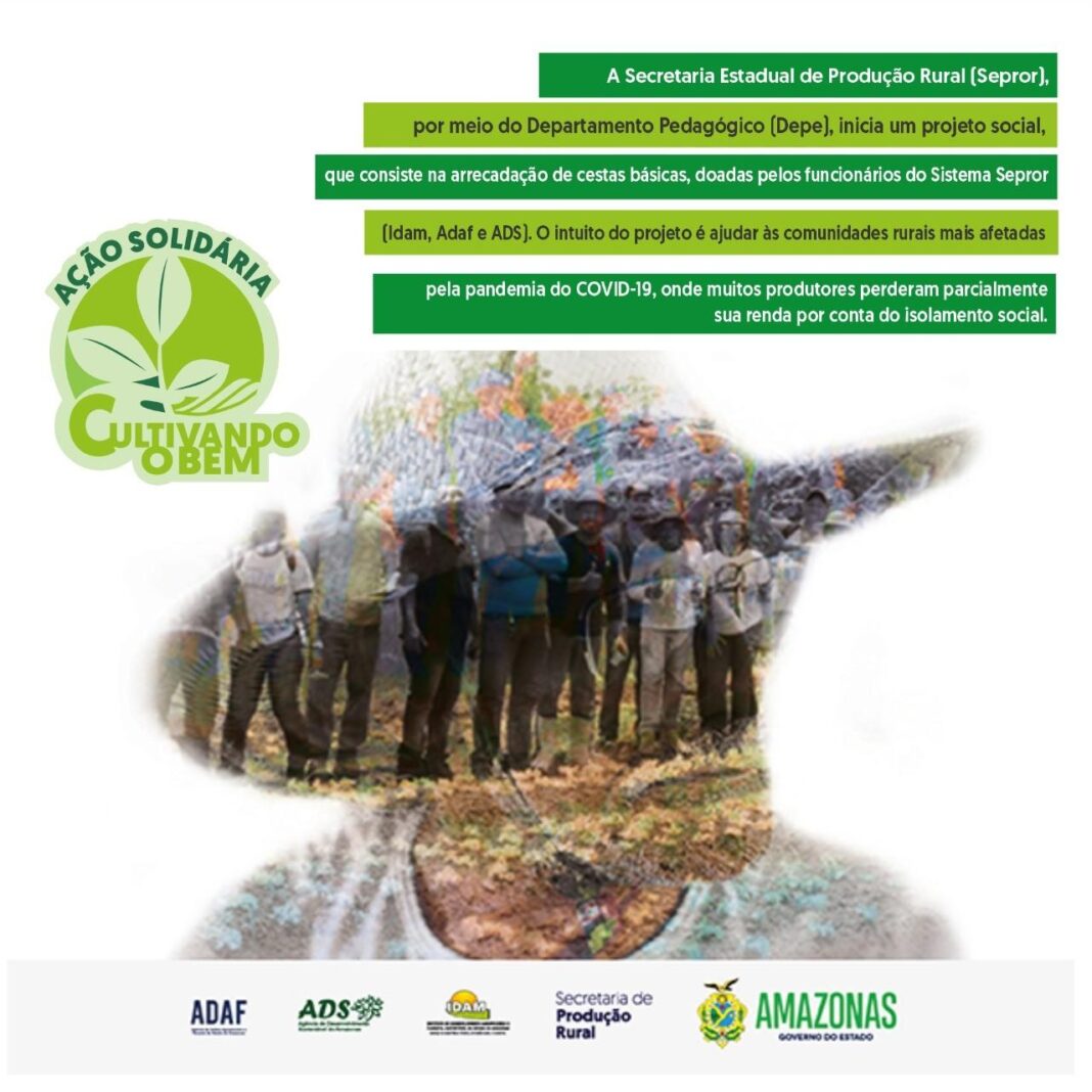 . O projeto  “Cultivando o Bem”, que visa a arrecadação de cestas básicas, a partir de doações feitas pelos servidores e empregados públicos do Sistema Sepror (Idam, Adaf e ADS). O intuito da ação é ajudar as comunidades rurais da várzea mais afetadas pela enchente dos rios e pela pandemia do Covid-19, onde muitos produtores perderam parcialmente sua renda.
