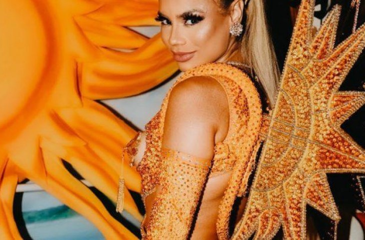 A cantora carioca Lexa vestiu um look lindo e luxuoso, inspirado no sol, por conta do verão, no aquecimento para o carnaval, durante ensaio nesse último domingo (20), na quadra lotada da Portela, na Zona Norte do Rio de Janeiro. A fantasia feita com pedrarias foi confeccionada pelo figurinista do Boi-Bumbá Caprichoso, Leandro Souza.