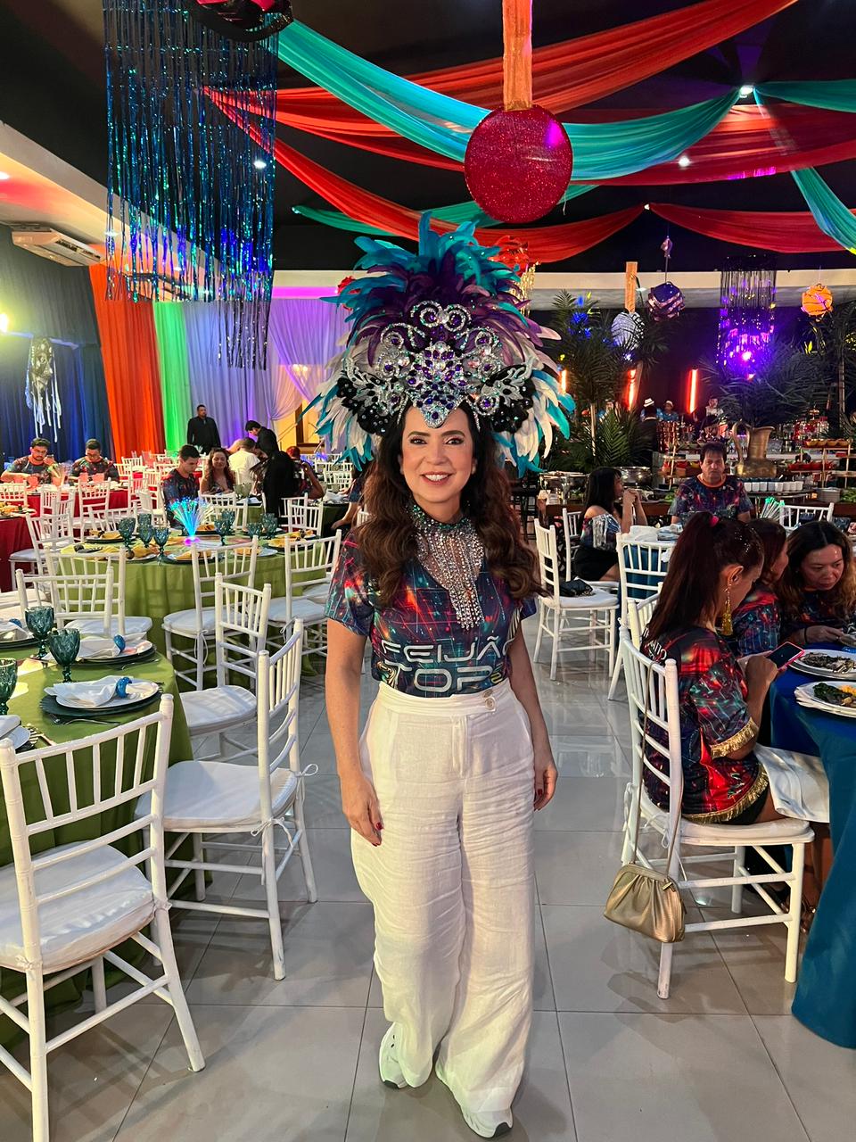Neste ano, o evento apostou em um conceito inovador e ousado: o “Carnaval Tecnológico”. A proposta ganhou vida na ornamentação moderna e criativa, que misturou elementos futuristas ao espírito carnavalesco. O grande destaque ficou por conta de um robô de quase dois metros de altura, que circulou pelo espaço e arrancou suspiros, flashes e muitos sorrisos do público, tornando-se um dos pontos altos da festa.